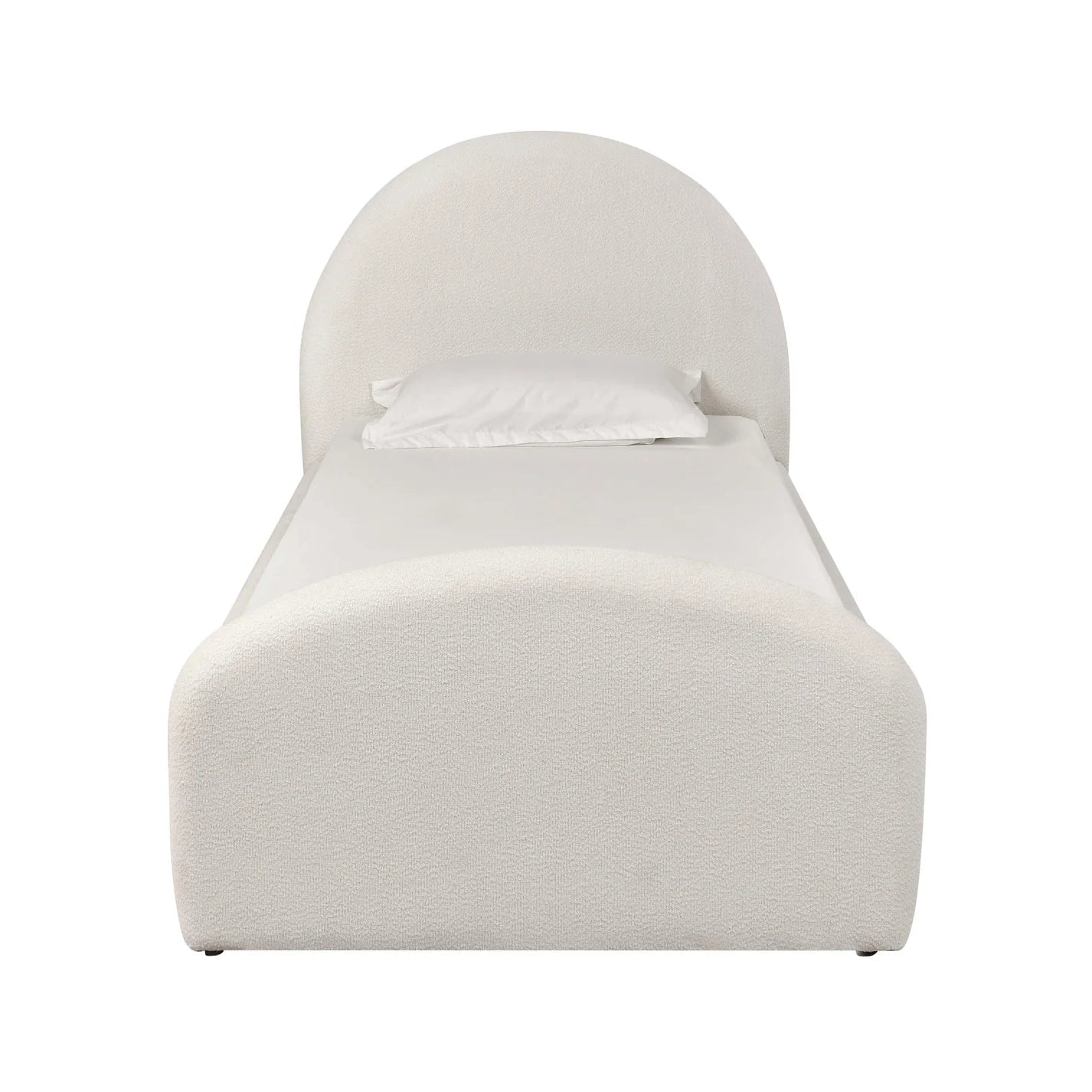 Transform your space with the Moon Twin Bed, a stunning piece that embodies the Art Deco style. Available as a classic twin or a versatile trundle bed, it seamlessly blends functionality with charm. Available in a cream boucle fabric or a rose upcycled chenille, each adding a touch of warmth and style to your bedroom. Whether hosting overnight guests or creating a cozy retreat for yourself, the Moon Twin Bed invites sweet dreams and delightful memories, making every night a little more magical.